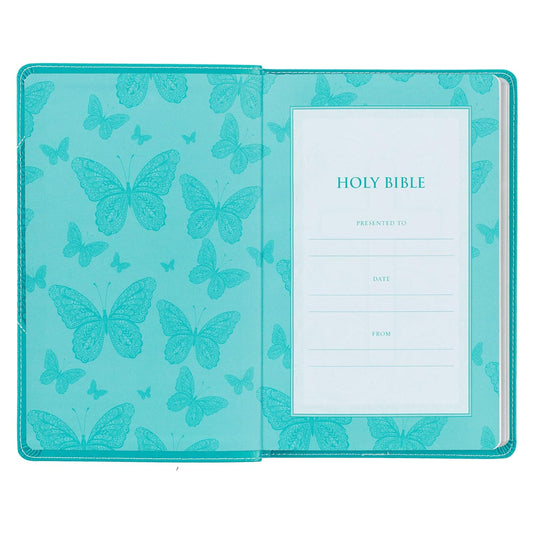 KJV Holy Bible, Gift Edition for Girls/Teens King James Version, Faux Leather Flexible Cover, Teal Butterfly