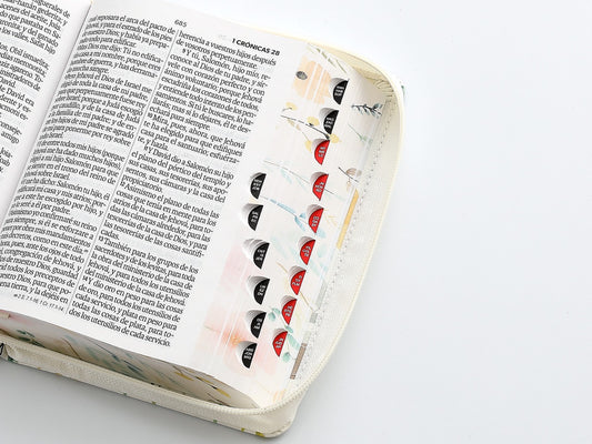 Biblia Reina Valera 1960 Compacta Letra Grande 12 Puntos Filo Floral con Índice y Cierre Victoria Flores Primavera