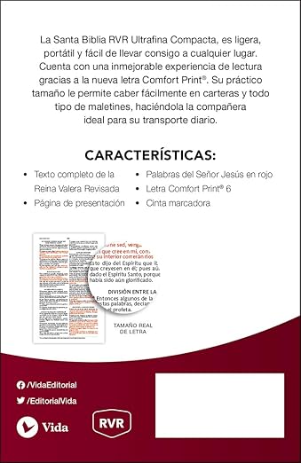 RVR60, Santa Biblia, Letra Grande, Tamaño Compacto, Tapa Dura/Tela, Azul Floral, Palabras de Jesús en Rojo