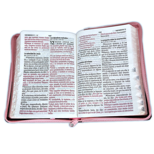 RVR77, Santa Biblia, Ultrafina, Tamaño compacto, Leathersoft, con Cierre, Rosado