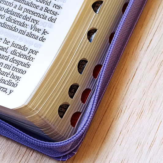 Biblia con Zipper Letra Grande de 12 puntos - Reina-Valera 1960 - morado con indice