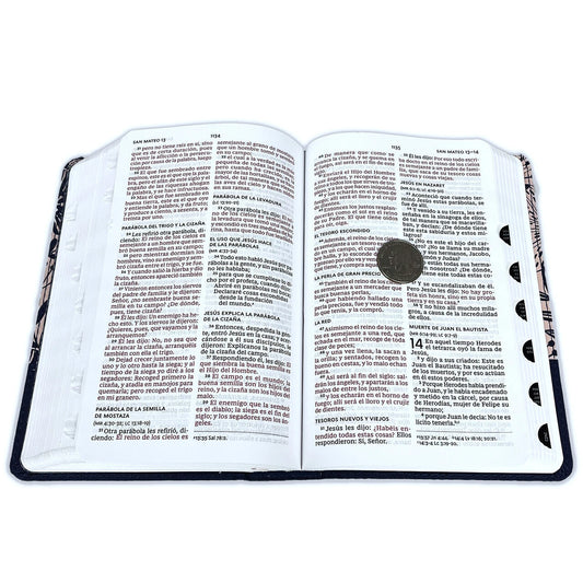 RVR60, Santa Biblia, Letra Grande, Tamaño Compacto, Tapa Dura/Tela, Azul Floral, Palabras de Jesús en Rojo, con Índice