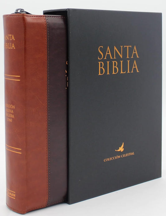 Biblia Reina Valera 1960 Letra Grande en Español de 14 puntos-Tamaño manual con Cierre, Indice, foro en semil piel color caoba