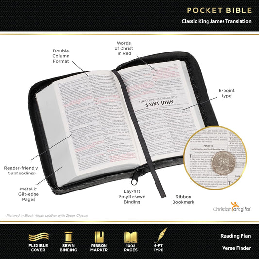 KJV Holy Bible, Compact Faux Leather Red Letter Edition - Ribbon Marker, King James Version, Black Faux Leather, Zipper Closure (KJV Compact Bible)
