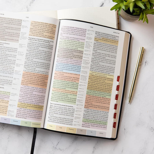 KJV Rainbow Study Bible, Black LeatherTouch, Indexed, Black Letter, Pure Cambridge Text, Color Coded, Bible Study Helps, Reading Plans, Full-Color Maps, Easy to Read Bible MCM Type