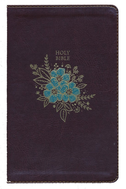 KJV Large-Print Thinline Bible--soft leather-look, burgundy Floral