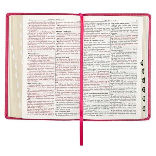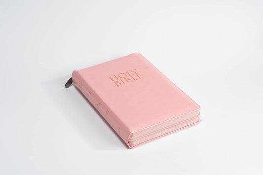 King James Version Holy Bible- Large Print- Personal Size- Deluxe Edition with Zipper- Thumb Index- Words of Christ in Red- Leathertouch with Pink Cover