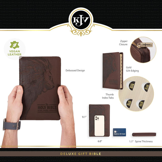 KJV Deluxe Gift Bible--soft leather-look, brown (indexed) with zipper