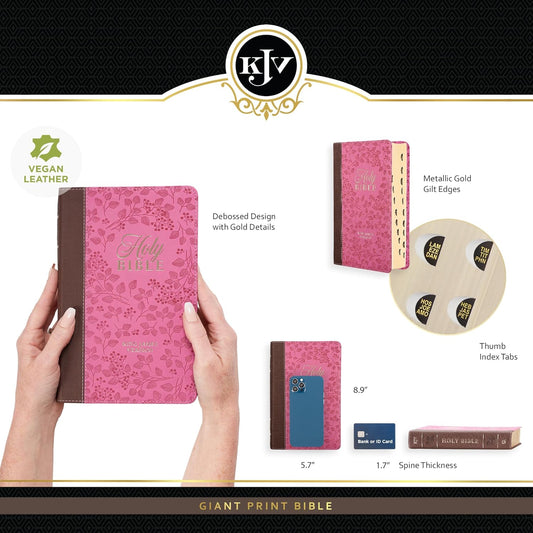 KJV Holy Bible, Giant Print Standard Size Faux Leather Red Letter Edition - Thumb Index & Ribbon Marker, King James Version, Brown/Pink Berry