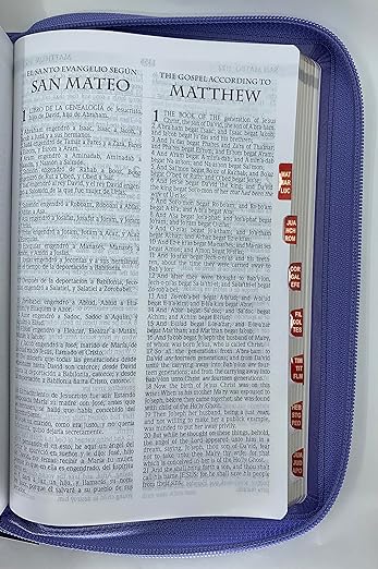 Biblia Bilingue Tamaño Manual RVR.1960/ KJV Símil Piel Lavanda Con Indice Cierre