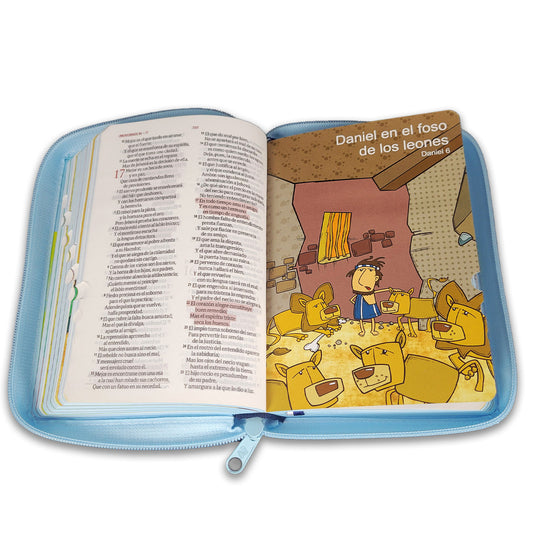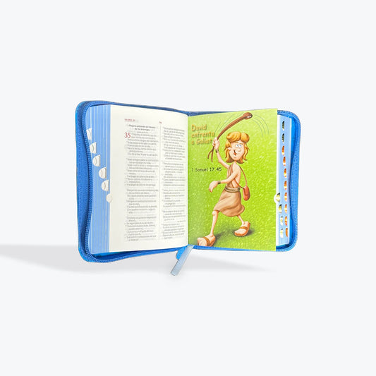 Biblia Ilustrada para Niños Compacta RV1960, piel azul con índice