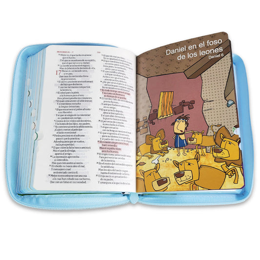 NBLA, Biblia Aventura, Interior a color, Leathersoft, Azul, con Cierre,