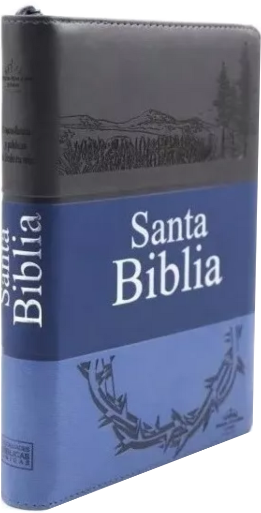 Biblia Letra Grande con Cierre RV1960, Manual Imitación Piel, Azul y Gris con Indice