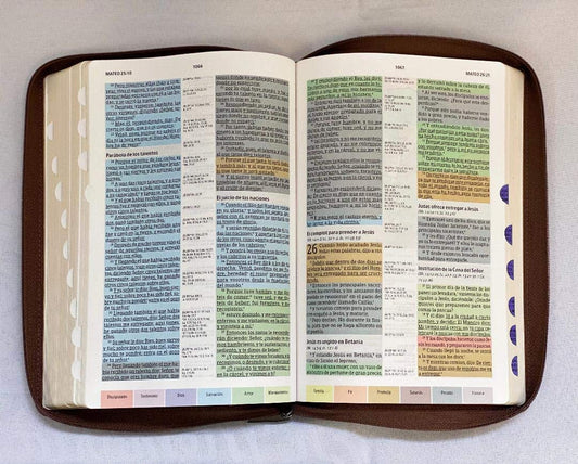 Biblia de Estudio Arco Iris Bronce britanico, Simil Piel Con Cierre y Indice