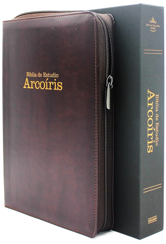 Biblia de Estudio Arco Iris Bronce britanico, Simil Piel Con Cierre y Indice