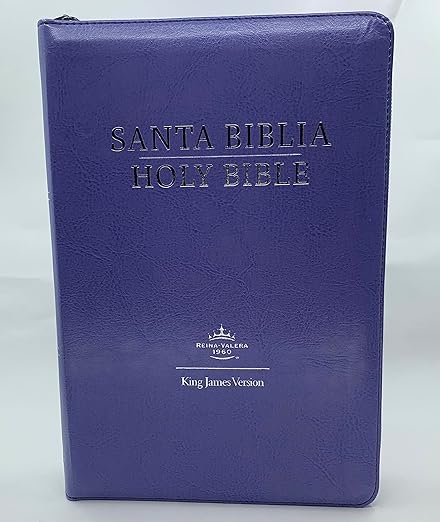 Biblia Bilingue Tamaño Manual RVR.1960/ KJV Símil Piel Lavanda Con Indice Cierre