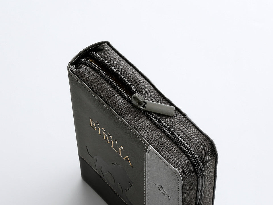 Biblia con Cierre Portátil 12 puntos RV1960, imit piel gris león con índice