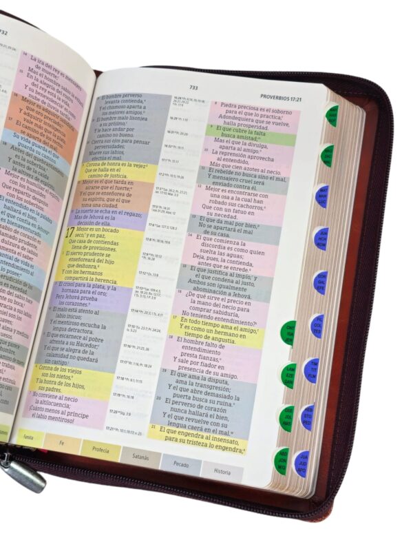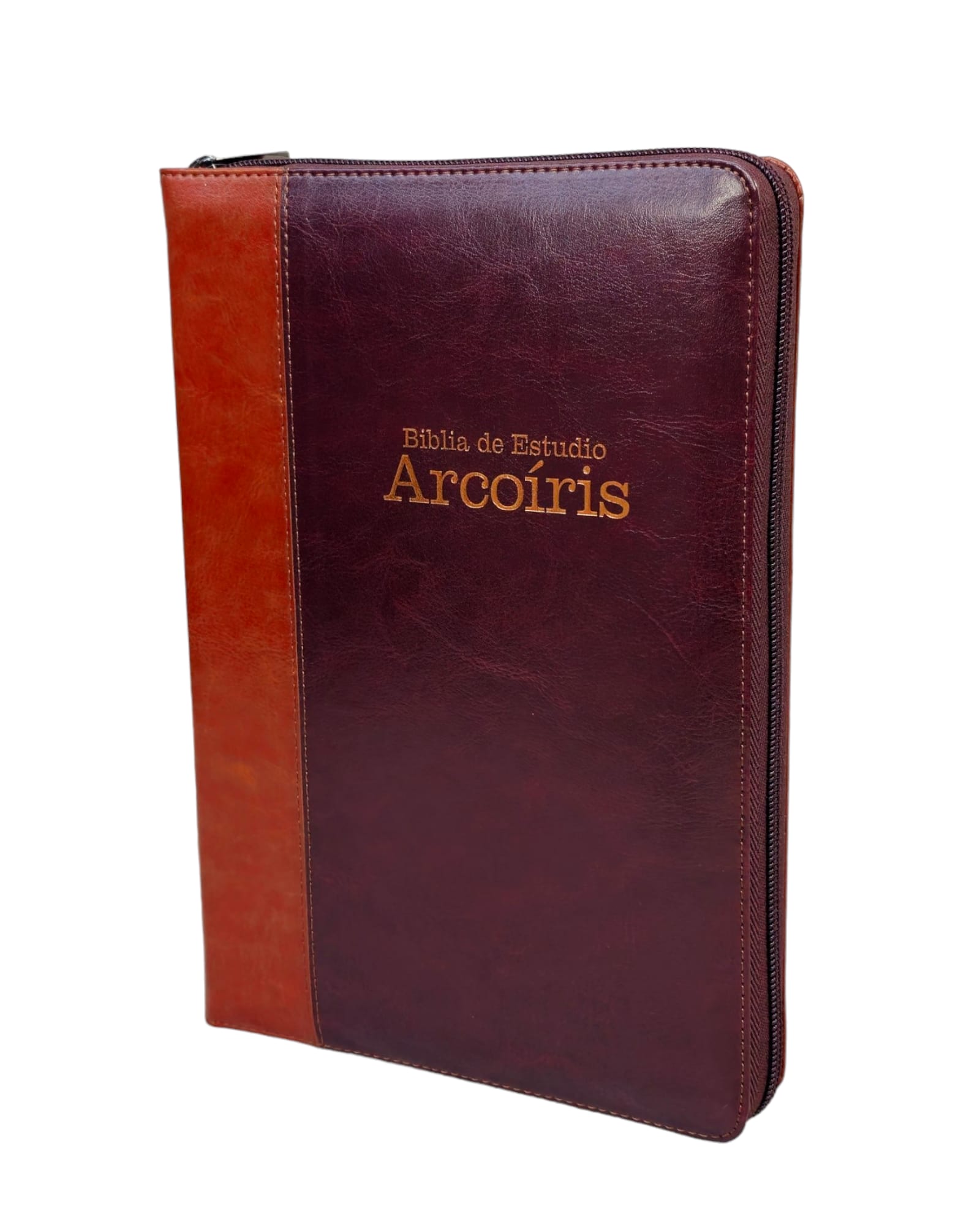 Biblia de estudio arco iris RVR.1960 piel marron oscuro/Caoba con índice y cierre