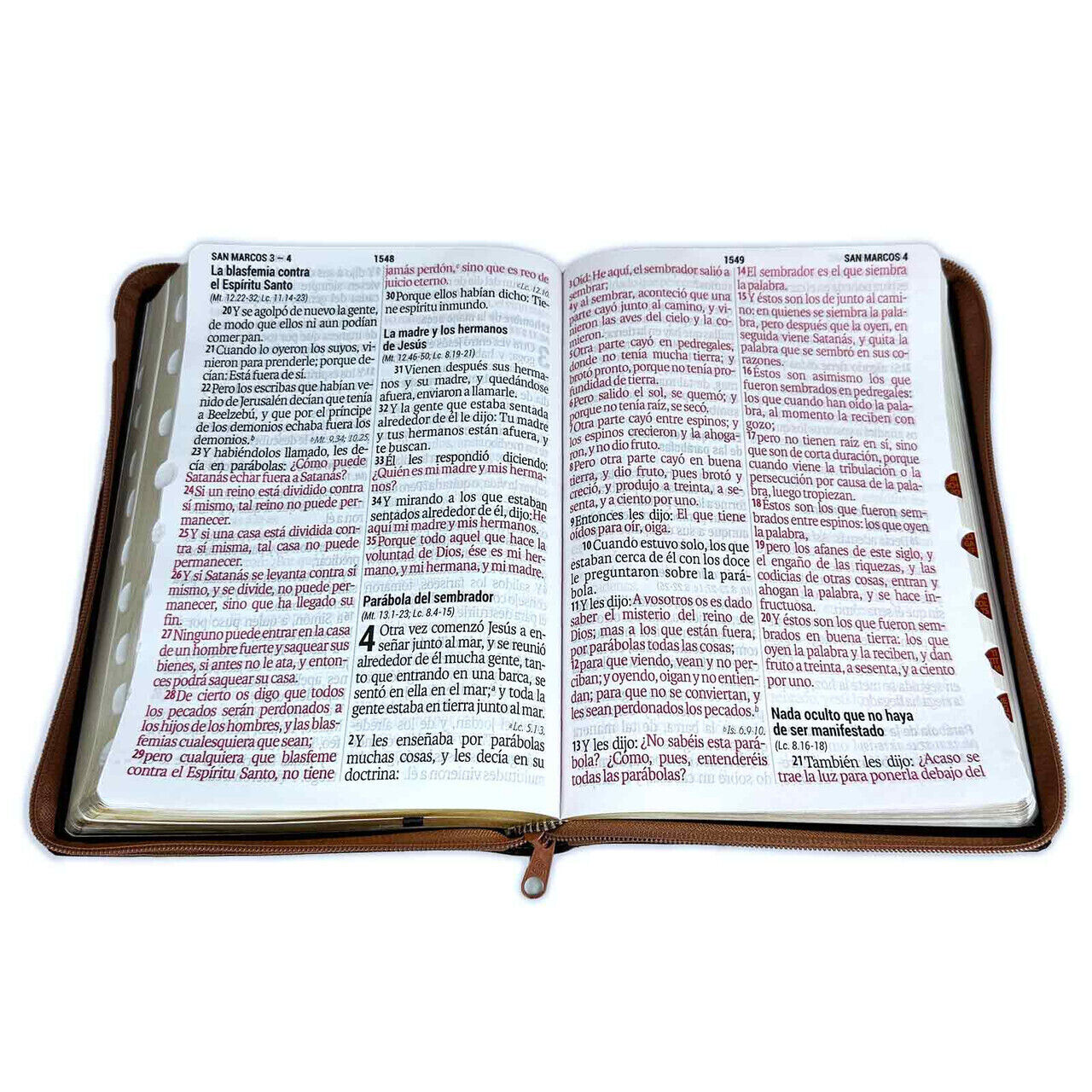 El nuevo y elegante diseño tipográfico hace que esta Biblia tenga un texto súper nítido y cómodo para leer. Sus páginas espaciosas ofrecen referencias al final del versículo y permiten escribir notas y subrayar pasajes con facilidad.