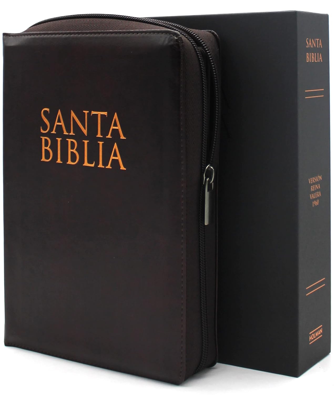 Biblia Reina Valera 1960 Letra Gigante de 14 puntos Cierre Indice Foro de Semil Piel en color Caoba con Estuche de Proteccion Edicion especial con Fotos y Ilustraciones