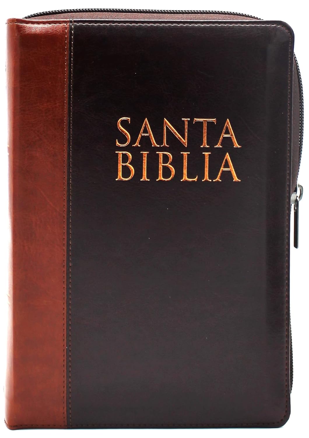 Nueva Biblia en traduccion Reina Valera 1960 con cierre, indice, letra gigante de 14 pts en semi piel color caoba con cafe claro en tamano manual.