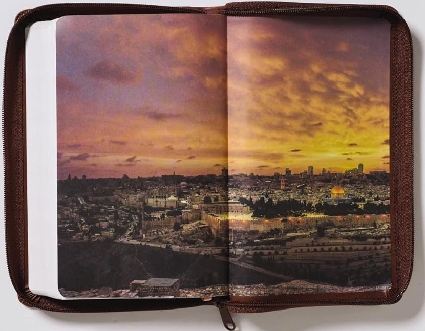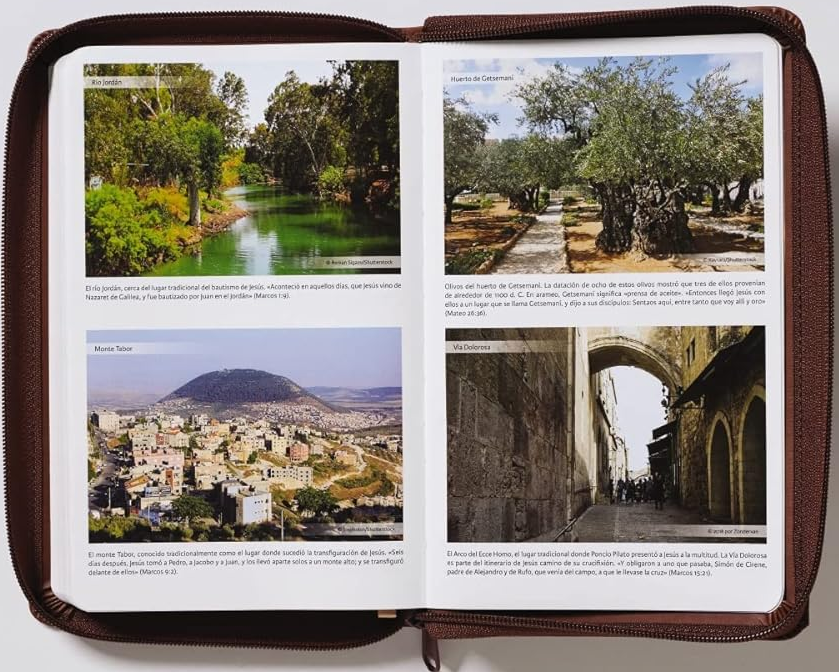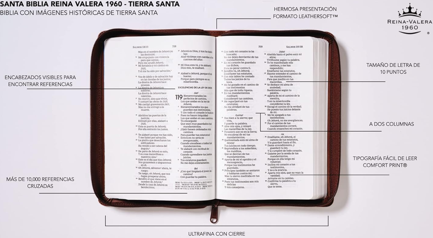 Una Reina-Valera 1960 de hermoso diseño con cierre, una magnífica colección de imágenes de Tierra Santa y en el formato ultrafino fácil de llevar que ya amas.