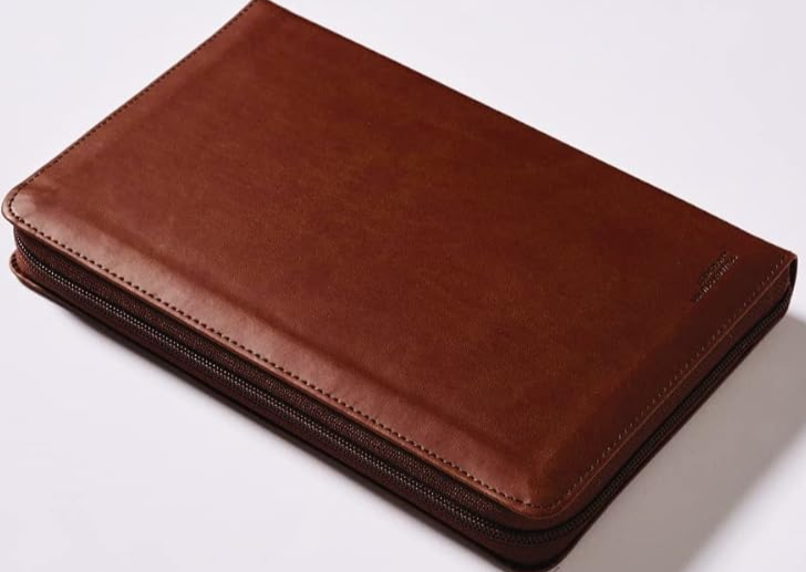 Biblia Reina-Valera 1960, Tierra Santa, Ultrafina letra grande, Leathersoft, Café, con cierre