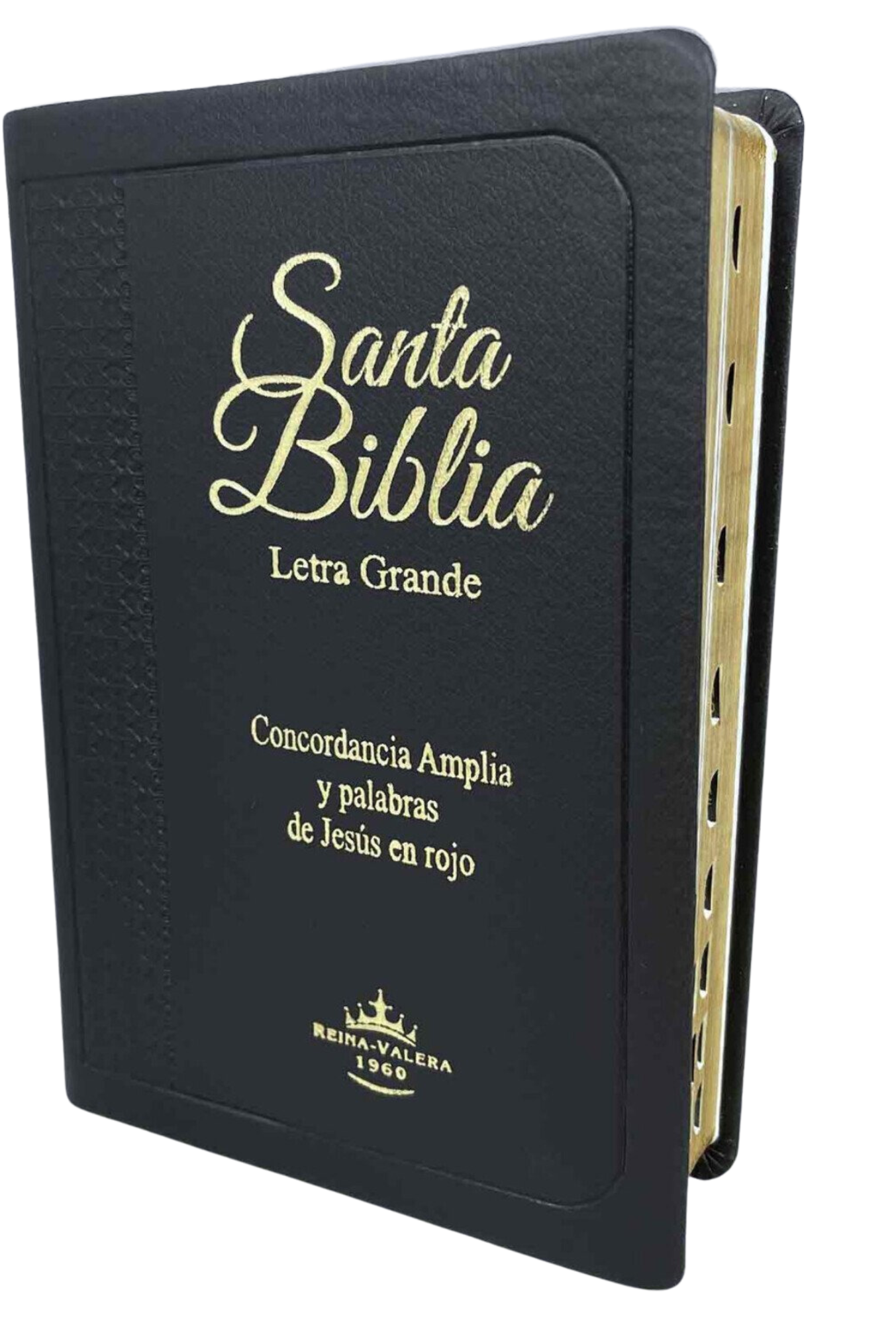 Biblia RVR60 – Concordancia Amplia, Letra Grande, Palabras de Jesús en Rojo, Indice, Tapa Negra y Canto Dorado