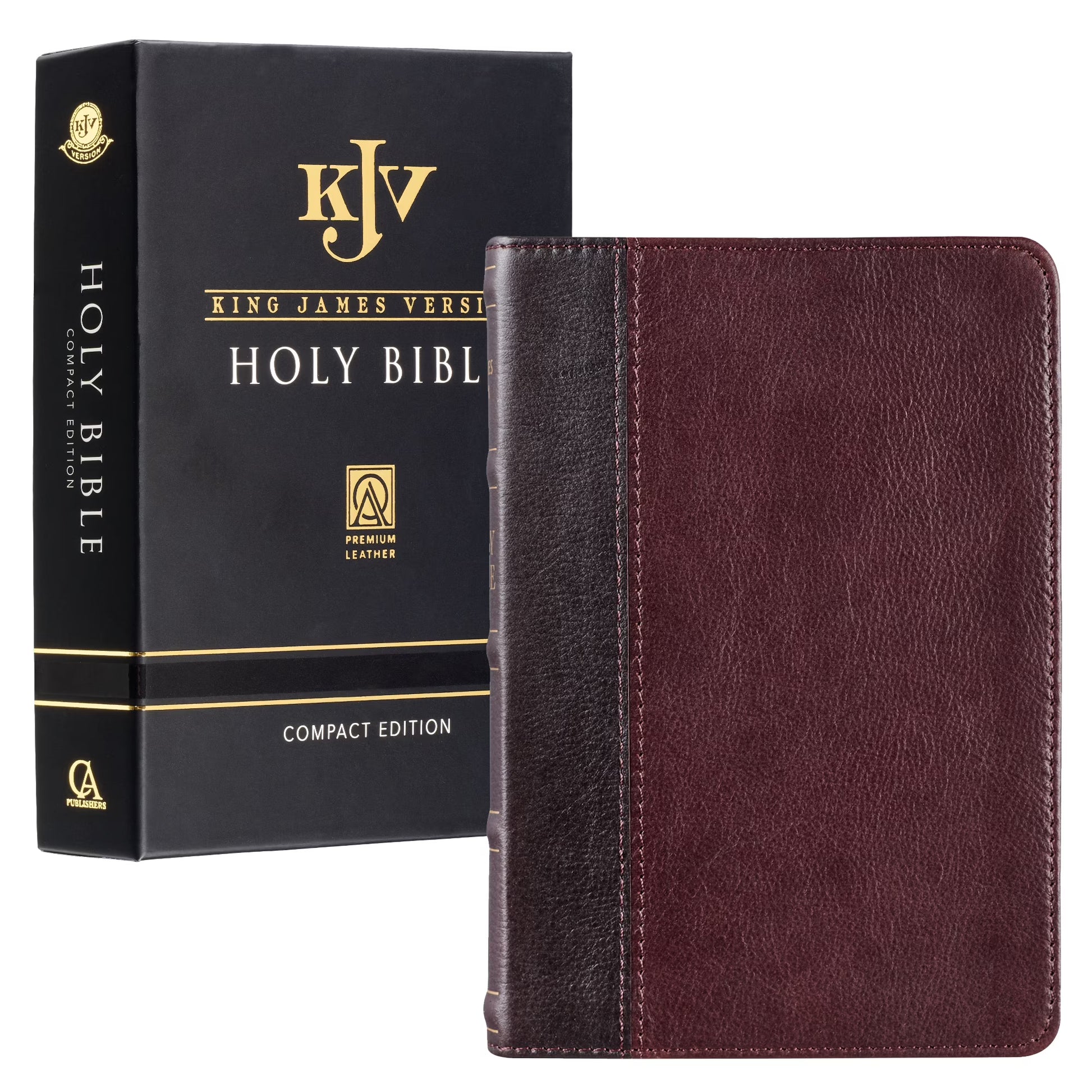 KJV Holy Bible, Compact Premium Full Grain Leather Red Letter Edition - Ribbon Marker, King James Version, Burgundy/Mahogany Two-tone