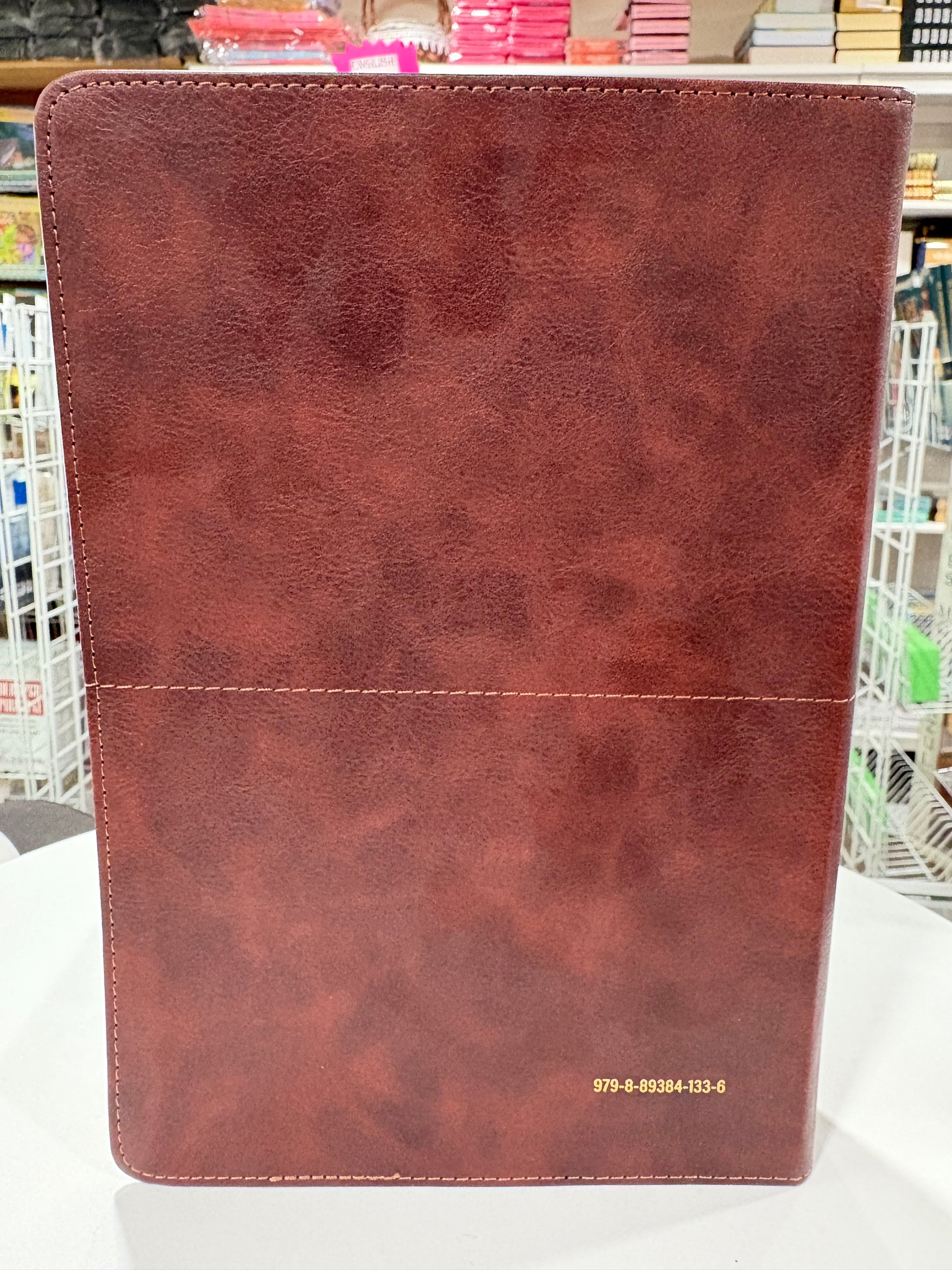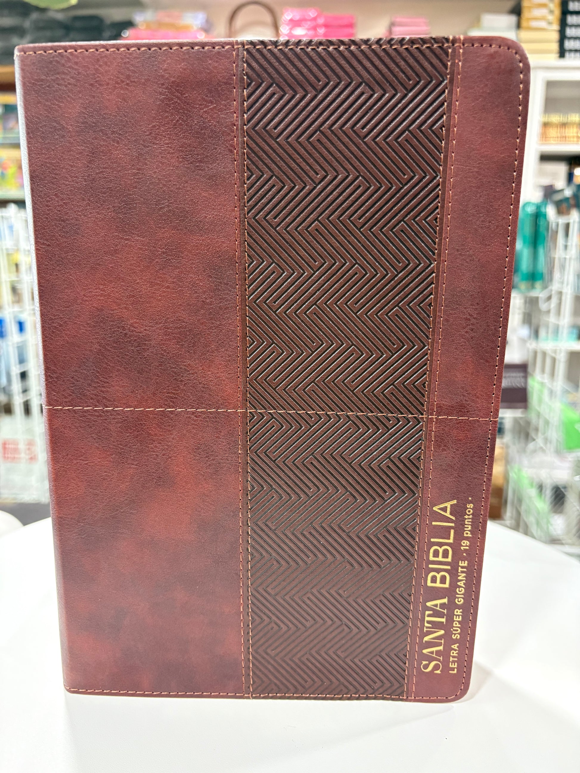 Reina Valera 1960, tamaño de Biblia Grande (158x235 mm), Letra Súper Gigante 19 puntos, i/piel, canto dorado,con índice, palabras de Jesús en rojo, concordancia , Concordancia de personajes bíblicos. ayudas, referencias cruzadas. 32 páginas a todo color con ayudas y esquemas. 12 mapas a todo color .Letra 19 puntos. 2112 páginas