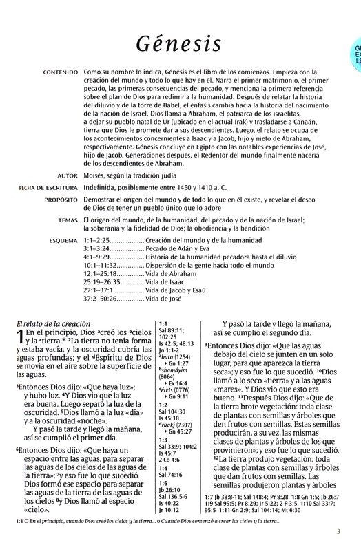 The NTV Edición de referencia ultrafina, letra grande [Slimline Reference Edition, Large Print] has been a very popular Bible for many years. It offers a comfortable reading experience for those who prefer large print. Deluxe features include book introductions, a center-column cross-reference and word-study system with a dictionary and index in Hebrew/Greek, a concordance, full-color maps, words of Christ in red, a ribbon marker, a presentation page, thumb index, and gilded page edges.